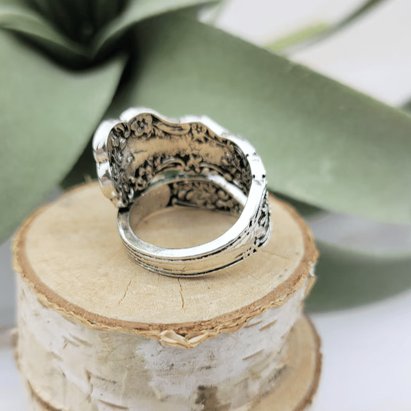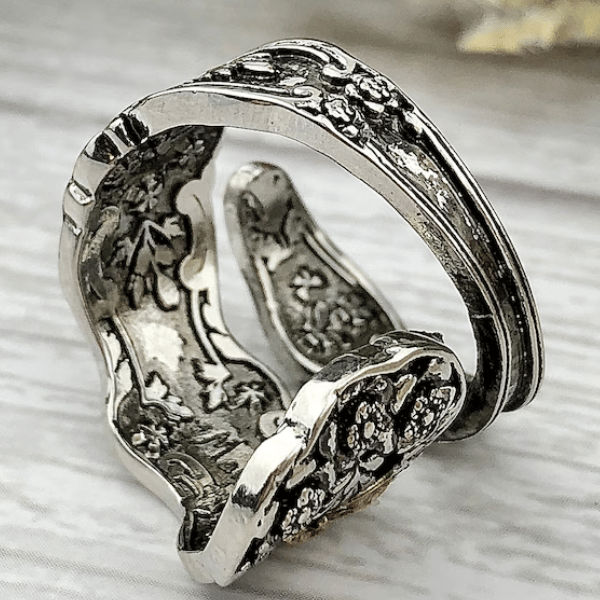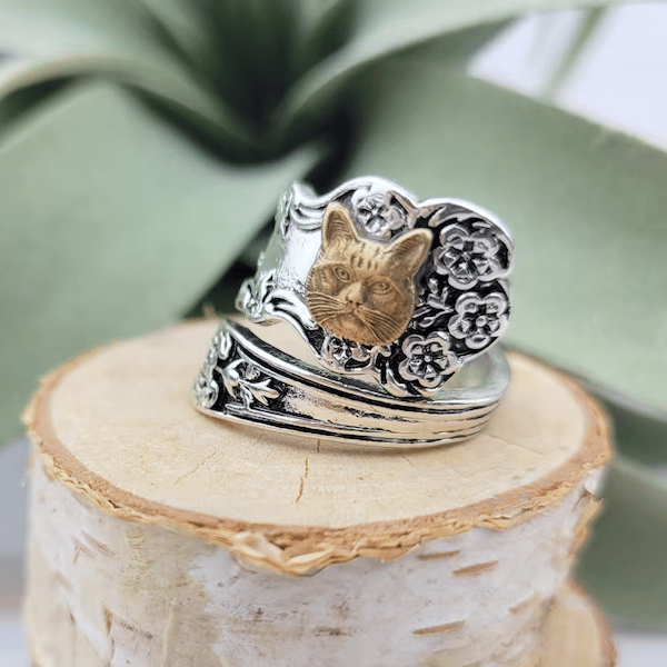 Cat Ring—vintage spoon design in silverware jewelry. A unique wrap-around ring with a charming, whimsical touch.